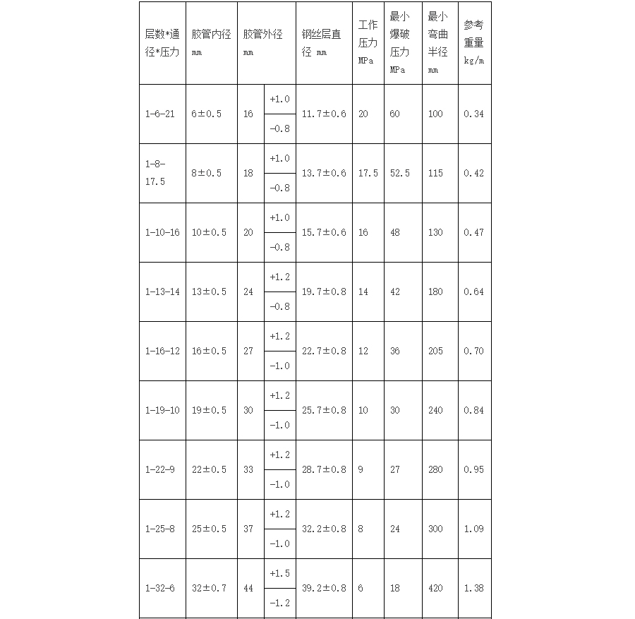 鋼絲增強(qiáng)液壓橡膠軟管主要用于礦井液壓支架、油田開采,適宜于工程建筑、起重運(yùn)輸、冶金鍛壓、礦山設(shè)備、船舶、注塑機(jī)械、農(nóng)業(yè)機(jī)械、各種機(jī)床以及各工業(yè)部門機(jī)械化、自動(dòng)化液壓系統(tǒng)中輸送具有一定壓力和溫度的石油基(如礦物油、可溶性油、液壓油、燃油、潤滑油)液體、水基液體(如乳化液、油水乳濁液、水)、氣體等和液體傳動(dòng)用。