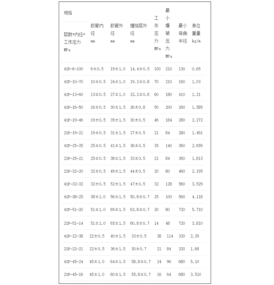 注:本企業(yè)纏繞膠管標(biāo)準(zhǔn)參照GB/T10544-03標(biāo)準(zhǔn),DIN2003,SAE100R9、R